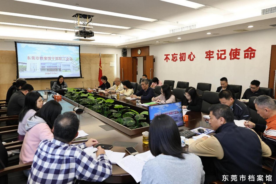 会议要求,要围绕2026年重点工作,做好“六篇文章”。一是持续写好信念如磐、初心如炬的“忠诚篇”。坚持“档案工作姓党”的政治属性,用习近平新时代中国特色社会主义思想凝心铸魂,深刻领悟“两个确立”的决定性意义,增强“四个意识”、坚定“四个自信”、做到“两个维护”。二是持续写好科学谋划、高步起点的“开局篇”。认真编制本馆“十五五”发展规划,加强“四个体系”建设,加快落实市档案中心选址方案,深化改革创新,更好统筹发展和安全,推动东莞档案工作在新起点上增创新优势、实现新突破。三是持续写好勇于担当、敢于作为的“实干篇”。建立健全“四重”档案收集归集和保护利用工作机制,加快完成十五运会档案、篮球城市档案接收工作;聚焦“四史”教育、重要行业发展、非物质文化遗产传承加强档案征集,持续深化名人档案征集、口述历史档案采集、城市记忆影像征集等工作。做好红色档案和改革开放档案深度挖掘、粤港澳特色档案文化融合交流以及展厅改造等工作。主动融入数字经济、数字社会、数字政府建设,持续推进本馆电子文档单套归档与电子档案单套管理,加快电子档案进馆步伐。四是持续写好心系人民、枝叶关情的“惠民篇”。健全本馆档案开放审核协同机制,加快推进馆藏档案开放审核工作。持续深化全国档案查询利用服务平台应用和区域性档案信息资源共享平台建设,全力满足人民群众查档用档需求。继续开展好送档案展览进基层活动以及暑期档案实践夏令营活动,巩固档案馆爱国主义教育基地建设,助推思政教育。五是持续写好责任如山、筑牢防线的“安全篇”。建立健全本馆自然灾害、突发事件防范和应急处置机制,强化档案服务外包安全管理、网络意识形态风险研判以及人工智能等新技术应用伴生的安全风险管理,构建“主动防御+实战演练”安全体系。做好档案异地异质备份工作,建立备份数据定期校验机制,确保备份数据真实有效。六是持续写好锤炼作风、善作善成的“人才篇”。扎实开展树立和践行正确政绩观学习教育,努力创造经得起实践、人民、历史检验的实绩。巩固拓展深入贯彻中央八项规定精神学习教育成果,深化纪律作风建设,严格落实强作风提效率塑形象深化模范机关创建三年行动。持续开展“人才强档”工程,着力打造党性过硬、视野开阔、善于创新、真抓实干的档案干部人才队伍。